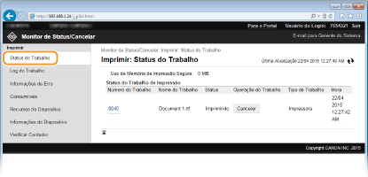 Independente da configuração Gerenciamento de IDs do departamento, todos os documento sendo impressos atualmente ou aguardando para serem impressos será exibida.