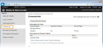 Quando o [Acessar Site de Compras] não é exibidoNo painel de operação, defina <Exibir Botão Comprar Consumíveis (RUI)> como <Ativado>.