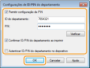 Marque a caixa de seleção para exibir a tela pop-up [Confirmar ID/PIN do departamento] sempre que você imprimir de um computador.