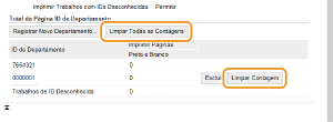 Se você deseja zerar os contadores, clique no link do texto correspondente e clique em [ID de Departamento] e clique em [Limpar Contagem]