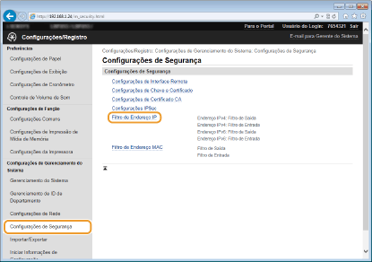 Se os endereços IP forem digitados incorretamente, provavelmente, você não poderá acessar a máquina da Interface Remota, que nesse caso, você precisará definir <Filtro de Endereço IPv4> ou <Filtro de Endereço IPv6> para <Desativado>. Filtro de Endereço IPv4 Filtro de Endereço IPv6