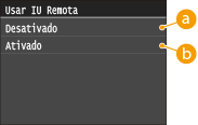 A Interface Remota é útil porque as configurações da máquina podem ser especificadas usando um navegador da web em um computador. Para usar a Interface Remota, a máquina precisa estar conectada a um computador em uma rede. Se a máquina estiver conectada a um computador via USB, ou se você não precisar usar a Interface Remota, você pode querer desabilitar a Interface Remota para reduzir o risco de ter a sua máquina controlada remotamente por terceiros mal intencionados.