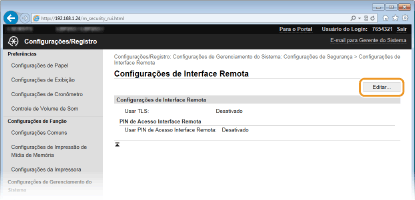 Clique em [Configurações de Segurança]  [Configurações de Interface Remota].