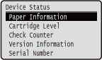 Displays the status of the machine, such as the amount of paper or the amount remaining in the toner cartridge.
