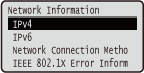 Displays the network settings such as the IP address of the machine and status such as the condition of wireless LAN communications.