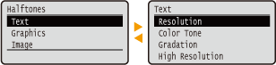 to scroll up or down. The text and background colors of an item are inverted when it is selected.