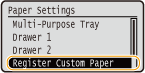 to select <Register Custom Paper>, and press