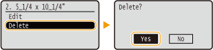 Select the registered size you want to delete, and press