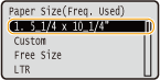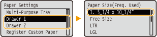 When selecting the paper size for the paper drawer