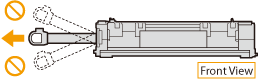 Shake the toner cartridge five or six times as shown below to evenly distribute the toner inside the cartridge, and then place it on a flat surface.