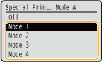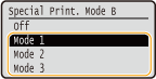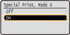 If the problem cannot be solved in spite of this item having been set, set <Special Printing Mode D> to <On>. Special Printing Mode D
