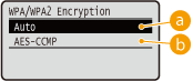 .![]() <Auto>Sets the machine to automatically select AES-CCMP or TKIP to match the setting of the wireless router.