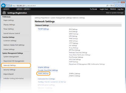 You can enable or disable the SNMP settings by pressing  on the operation panel. SNMP Settings