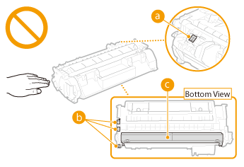 * Even within the storable humidity range, water droplets (condensation) may develop inside the toner cartridge if there is a difference of temperature inside and outside the toner cartridge. Condensation will adversely affect the print quality of toner cartridges.