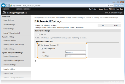 on the operation panel. Remote UI SettingsIf Remote UI settings are initializedThe Remote UI Access PIN is also initialized. After an initialization, reset the PIN. Initializing Menu