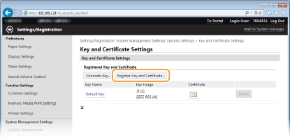 Click [Register Key and Certificate] or [Register CA Certificate].