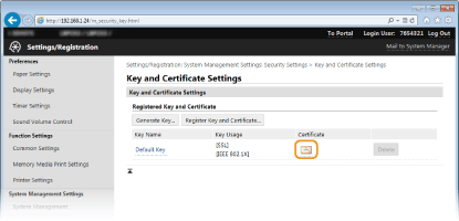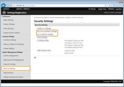 [Key and Certificate Settings] or [CA Certificate Settings].