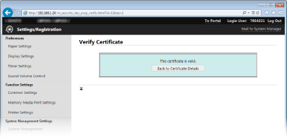Click [Key and Certificate Settings] to verify a key pair, or [CA Certificate Settings] to verify a CA certificate.