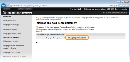 Cliquez sur le lien de l'URL qui s'affiche dans [Lien vers la page d'enregistrement].