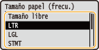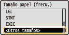 Si cambia con frecuencia el tamaño del papel, puede especificar <Tamaño libre>, para no tener que preocuparse de cambiar el ajuste de tamaño de papel cada vez que imprime.Puede configurar el equipo de modo que muestre un mensaje de error si tamaño de papel especificado en el controlador de impresora no coincide con el tamaño del papel cargado.