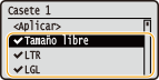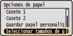 Para mostrar los tamaños de papel cuyas casillas de verificación se han desmarcado, seleccione <Otros tamaños> en la pantalla de selección de tamaño de papel.
