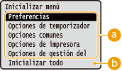 Si se inicializan las opciones de la IU remotaEl PIN de acceso a la IU remota también se inicializa.Tras una inicialización, vuelva a establecer el PIN de acceso a la IU remota. Configuración de un PIN para la IU Remota