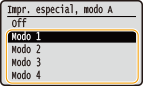 Si la configuración de este elemento no soluciona el problema, establezca <Impresión especial, modo D> en <On>. Impresión especial, modo D