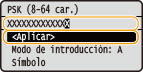 Introduzca la clave de red utilizando las teclas numéricas, seleccione <Aplicar> y pulse
