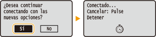 Una vez finalizada la configuración, aparece la siguiente pantalla, y aproximadamente dos segundos después, se ilumina el indicador de Wi-Fi.