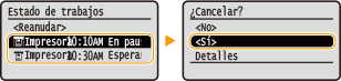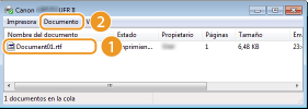 Seleccione el documento en la <Estado de trab. de impresión> pantalla