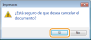 Cancelación desde una aplicaciónEn algunas aplicaciones, aparecerá una pantalla como la que se muestra a continuación.Puede cancelar la impresión haciendo clic en [Cancelar].