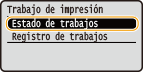 Seleccione <Registro de trabajos de impresión>, y pulse