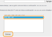 Seleccione una dirección IP y haga clic en [Eliminar].
