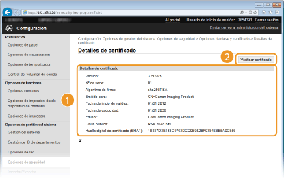 Compruebe los detalles del certificado y haga clic en [Verificar certificado].