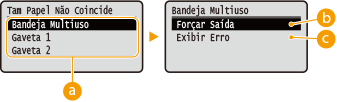 A maioria das configurações de impressão, como número de cópias ou impressão de um lado/dos dois lados podem ser feitas no driver da impressora ou um software aplicativo (Operações básicas de impressão), porém, a configuração de <Substituição Tamanho do Papel> precisa ser feita na máquina.