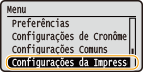 ![]() Disponibilidade de configuraçõesTodas as configurações da impressora descritas nesta seção, exceto para <Substituição Tamanho do Papel> (Substituição Tamanho do Papel), estão disponíveis somente para impressão PCL. Especificar estas configurações é desnecessário, por exemplo, quando você imprime usando o driver de impressora UFR II.