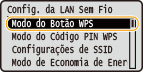 Selecione <Configurações da LAN Sem Fio> e pressione