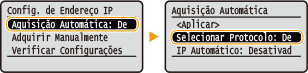 e defina ambos <Selecionar Protocolo> e <IP Automático> como <Desativado>. |
