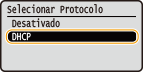 . Se você selecionar <DHCP> e pressionar quando esses serviços não estiverem disponíveis, a máquina perderá tempo e recursos de comunicação pesquisando por esses serviços na rede. |