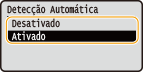 Selecione o tipo de Ethernet ![]() ![]() ![]() Quando <Modo de Comunicação> está configurado como <Meio Duplex>, não é possível selecionar <1000BASE-T>.