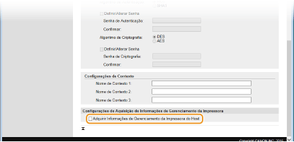 Marque a caixa de seleção para ativar o monitoramento das informações de gerenciamento da impressora da máquina através de SNMP. Para desativar o monitoramento das informações da impressoras, desmarque a caixa de seleção.