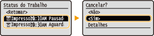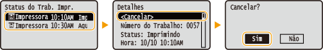 Cancelando da Interface RemotaVocê pode cancelar a impressão a partir da página [Status do Trabalho] na Interface Remota: Verificando o status atual dos documentos impressos
