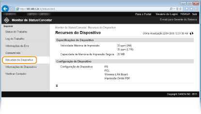 Independente da configuração Gerenciamento de IDs do departamento, todos os documento sendo impressos atualmente ou aguardando para serem impressos será exibida.