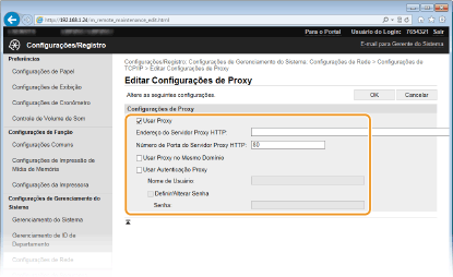 Marque a caixa de seleção [Usar Proxy] e especifique as definições necessárias.