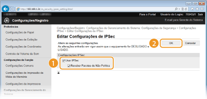 Usando o painel de operaçõesVocê pode ativar ou desativar a comunicação criptografada IPSec pressionando