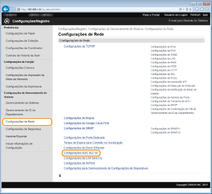 no painel de operação. Configurações IEEE 802.1X |