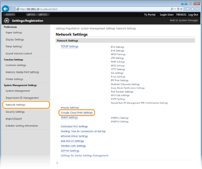 Enable the Google Cloud Print function of the machine. You can also disable the Google Cloud Print function of the machine.