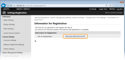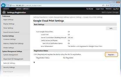 For the registration procedure, see the instruction manual for your mobile device or the Google Cloud Print Web site.