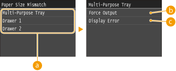 Most print settings such as setting for number of copies or 1-sided/2-sided printing can be made from the printer driver or an application software (Basic Printing Operations), but the setting for <Paper Size Override> is required to be made on the machine.