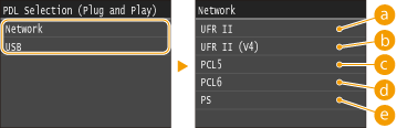 Select a page description language so that the machine is detected as a printer that is compatible with that language when it is connected to a computer by using Plug and Play.